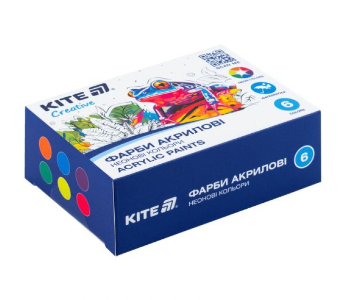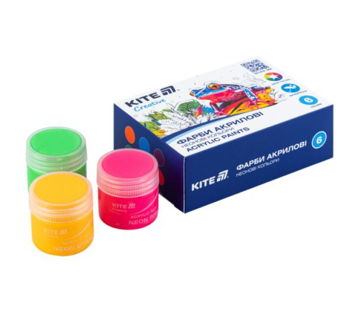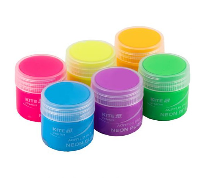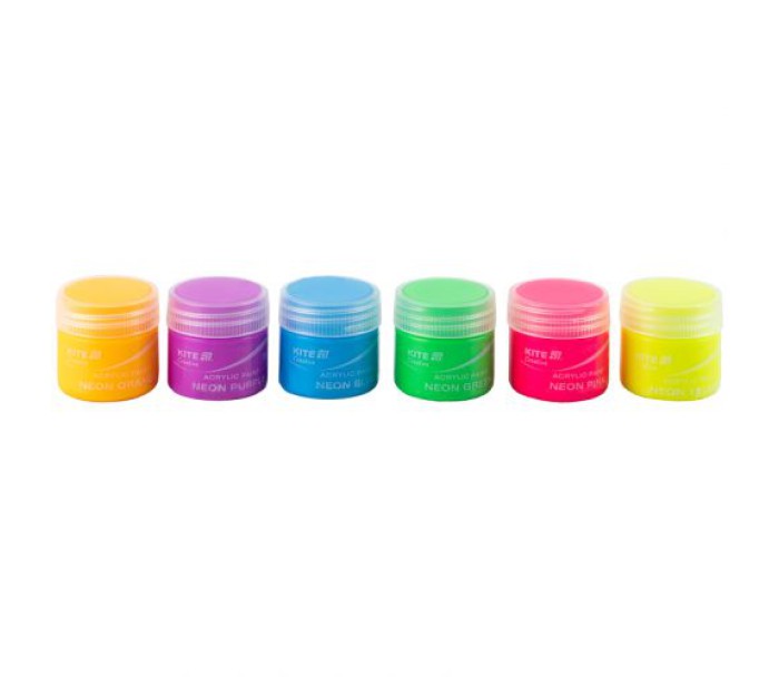 Неонові акрилові фарби Kite Creative K-274, 6 кольорів, кожна баночка по 20мл.