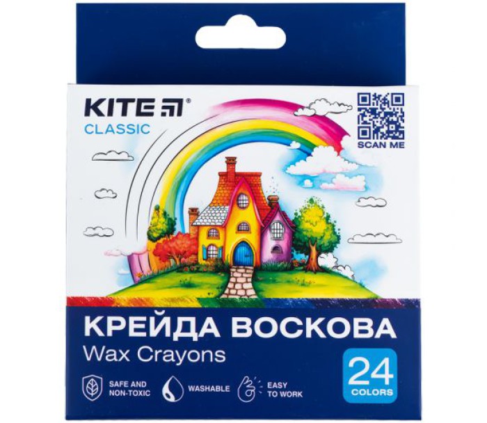 Кольорова воскова крейда Kite Classic в яскравій картонній упаковці. Набір має яскраву палітру