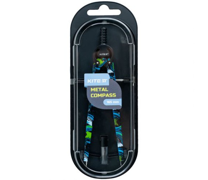 "Циркуль металевий з грифелем у футлярі та принтом Kite – яскравий інструмент для креслення. Яскраві кольори і унікальний дизайн. Циркуль виготовлений з високоякісного металу, довжина 165 мм. Прозорий футляр-пенал забезпечує захист і зручне зберігання. У комплекті є запасний грифель.