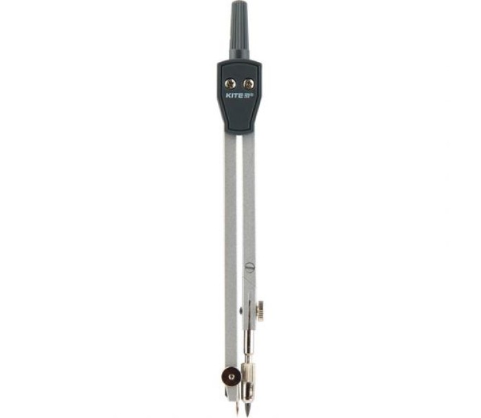 Металевий циркуль Kite K18-385 представлений в PVC чохлі. Виріб призначений для креслення кіл і дуг кіл, також може бути використано для вимірювання відстаней, зокрема, на картах. Також, використовується в геометрії, кресленні, для навігації або створення правильного геометричного малюнка.