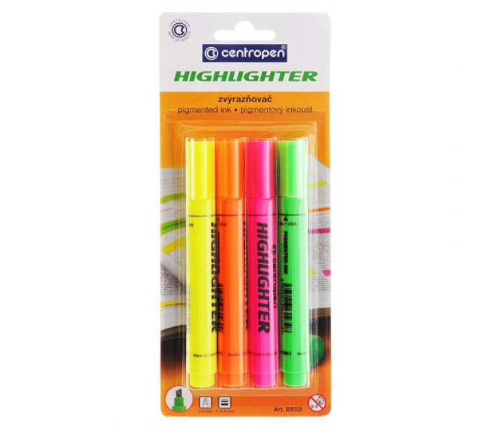 маркер, для, плавного, легкого, виділення, тексту, видах, паперу, текст, підвищеним, ємом, чорнила, спеціальним, супергнучким, наконечником, світлостійке, чорнило, водній, основі, насичені, кольори, слід, передається, факсу, просочується, крізь, папір, не, розмазує, текст, роздрукований, струменевому, принтері, CENTROPEN, 8852/4/BL