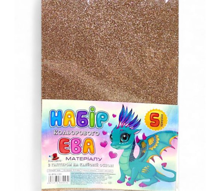 Фоаміран з глітером А4 (210х297мм, товщина 1,6 мм) 5 аркушів