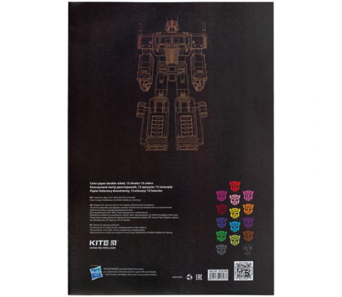 набір, двостороннього, кольорового, паперу, kite, яскравій, картонній, папці, набір, складається, двосторонніх, кольорових, аркушів, червоного, фіолетового, бузкового, пудрового, бордового, жовтого, помаранчевого, синього, блакитного, зеленого, салатового, коричневого, сірого, чорного, дитячий, KITE, канцелярія, TF24-250
