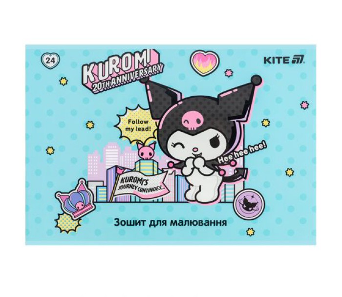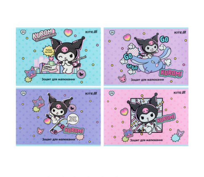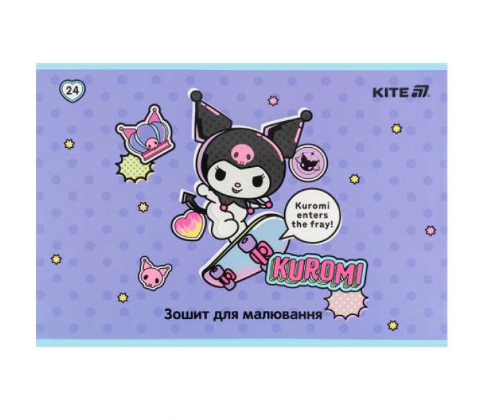 Горизонтальний зошит для малювання Kite в картонній обкладинці. Складається із 24 білих ущільнених (100 г/м2) аркушів формату А4, скріплених скобою з мікроперфорацією. Обкладинка із зображенням персонажів представлена в чотирьох дизайнах. Зошит для малювання рекомендований для дітей шкільного віку. Ефект на обкладинці: софт тач та вибірковий УФ лак