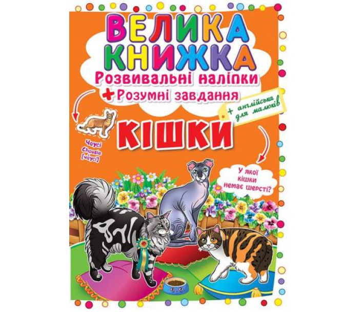 Велика книга "Розвиваючі наклейки. Розумні завдання. Кішки" (укр)