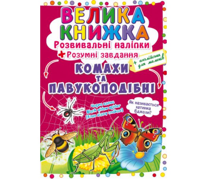 Велика книга "Розвиваючі наклейки. Розумні завдання. Комахи і павукоподібні" (укр)