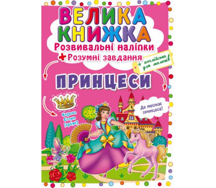 Велика книга "Розвиваючі наклейки. Розумні завдання. Принцеси" (укр)