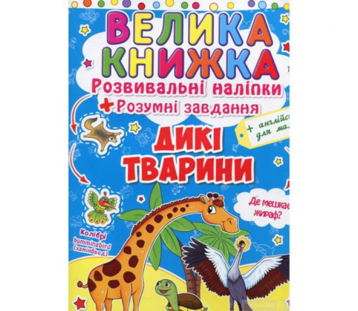 Велика книга "Розвиваючі наклейки. Розумні завдання. Дикі тварини" (укр)