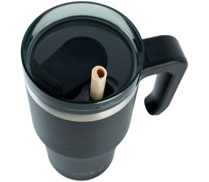 Термокружка з ручкою 600 мл. ¶Компактна і зручна. Має силіконову трубочку в комплекті.Гумовий клапан щільно прилягає до пластику та запобігає протіканню напою. ¶Матеріал: нержавіюча сталь ¶Внутрішня колба зі сталі AISI 304, її хімічний склад та властивості роблять її найбільш придатною для використання у харчовій промисловості. Добре утримує тепло. Розмір: 185х89х130мм.