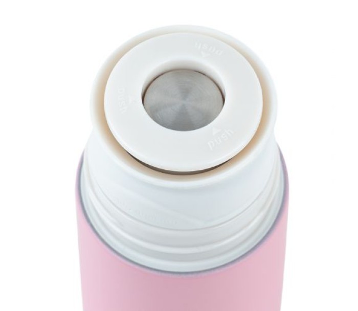 Особливості термоса: • об’єм 500 мл — оптимальний на щодень; • зберігає температуру до 6 годин — напій залишається приємним на смак; • високоякісна нержавіюча сталь AISI 304 — безпечна, довговічна, не змінює смак; • клапан для наливання — натискаєш і наливаєш, без зайвих рухів; • кришка-чашка з ручкою — пити можна з горнятка, зручно і вдома, і надворі; • зовнішнє пластикове покриття кришки — приємне на дотик, не нагрівається; • лаконічний дизайн — універсальний вигляд для дітей, підлітків і дорослих; • естетична подарункова упаковка — підходить для подарунку без додаткового пакування; • розмір 8,8х6,8х24,8 см. Рекомендовано не наливати окріп або зачекати хвилину перед закриванням, щоб уникнути зайвого тиску від пари.
