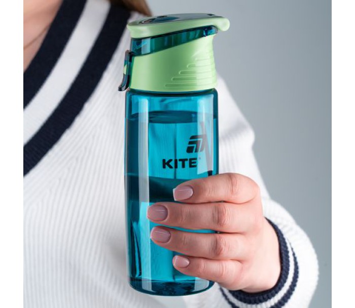 Пляшечка для води Kite, 550 мл, смарагдова. Виготовена з тритану. Тритан -надійний, міцний, безпечний пластик без запаху та смаку.