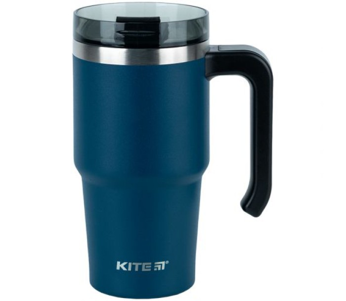 термокружка, ручкою, 600, компактна, зручна, має, силіконову, трубочку, комплекті, гумовий, клапан, щільно, прилягає, пластику, запобігає, протіканню, напою, нержавіюча, внутрішня, колба, сталі, aisi, 304, хімічний, склад, властивості, найбільш, придатною, для, харчовій, промисловості, добре, утримує, тепло, розмір, 185х89х130мм, Kite, K24-1207-2