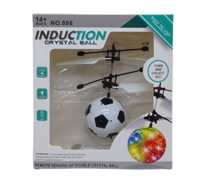 Індукційна іграшка "Футбольний мʼячик". Літаюча іграшка, управляється долонькою. Необхідно піднести руки до датчика (знизу фігурки), і іграшка буде слідувати за нею, піднімаючись і опускаючись. Оснащена яскравими світловими ефектами. Працює від акумулятора. Зарядка від USB.