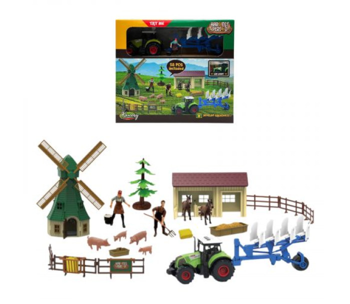 Ферма 58 елементів, трактор на батарейках, звуки, підсвічування, ігрові фігурки, вітряк, будинок, в коробці