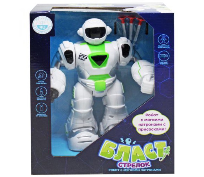 Інтерактивна іграшка "Робот" стане чудовим подарунком. Іграшка виконана з якісного та міцного пластику. Оснащена звуковими та світловими ефектами – озвучок російською мовою. Ходить та стріляє патронами на присосках. Розмір робота 22х15х7 см. Працює на батарейках (не йдуть у комплекті). Іграшка для дітей від 3 років.