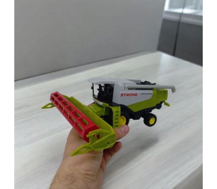 Іграшковий комбайн з високою деталізацією. Мініатюрниа репліка комбайну, яка зацікавить маленьких фермерів та любителів сільськогосподарської техніки. Прекрасно підійде для гри як удома, так і на вулиці. Має рухомі елеманти, навісне обладнання. Виготовлена з пластику та металу. Розмір - 24 х 18 х 8 см.