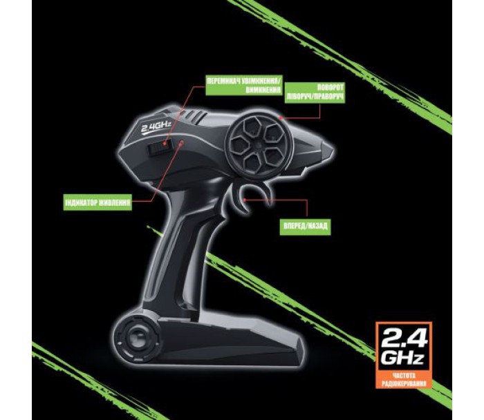 Комплектація: Машинка, пульт, зарядка, акумулятор