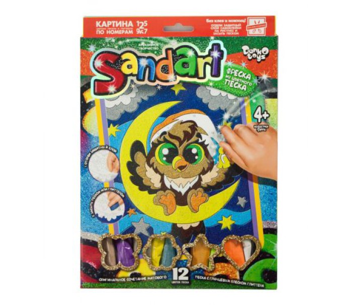 Комплектація: Картина-планшет, набір піску (12 кольорів), гліттерние блискітки, інструкція