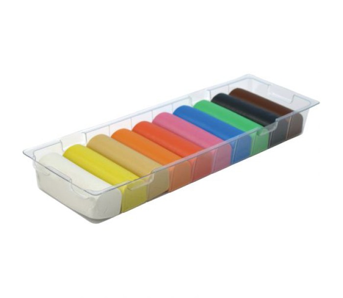 Набір пластиліну з 10 кольорів, 200 грамів. Легко розминається, не фарбує руки, не липне до пальців. Кольори легко змішуються. Упаковка - картон з пластиковим піддоном. Відповідає європейським стандартам безпеки.