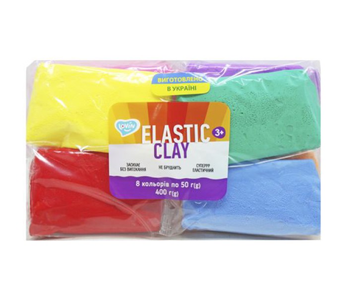 Набір для ліплення "Elastic Clay". Ніжність та пластичність матеріалу сприяє розвитку дрібної моторики рук та тактильних відчуттів. Перебуваючи на відкритому просторі пластилін застигає на 24 години без випікання. Не забруднює одяг. У наборі 8 кольорів по 50 г.