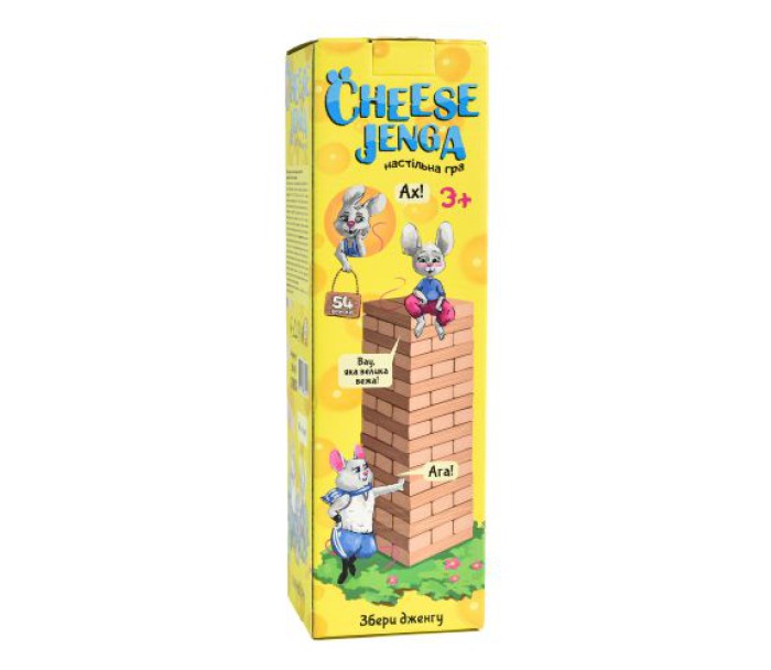Дженга - це настільна гра, що складається з 54 деревʼяних брусків. Гравці по черзі витягують по одному бруску з будь-якого рівня вежі і кладуть його нагору, намагаючись не зруйнувати конструкцію. Вежа стає дедалі нестабільнішою в процесі видалення брусків і збільшення її висоти. Мета гри - не впустити вежу, роблячи хід. Гра розвиває дрібну моторику, координацію та стратегічне мислення.