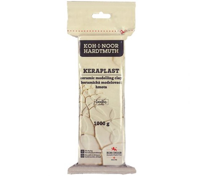 Пластилін Keraplast на основі натуральної глини. Твердне на повітрі протягом 24 годин. Не потребує термообробки. Можна розфарбовувати. Відповідає європейським стандартам безпеки.