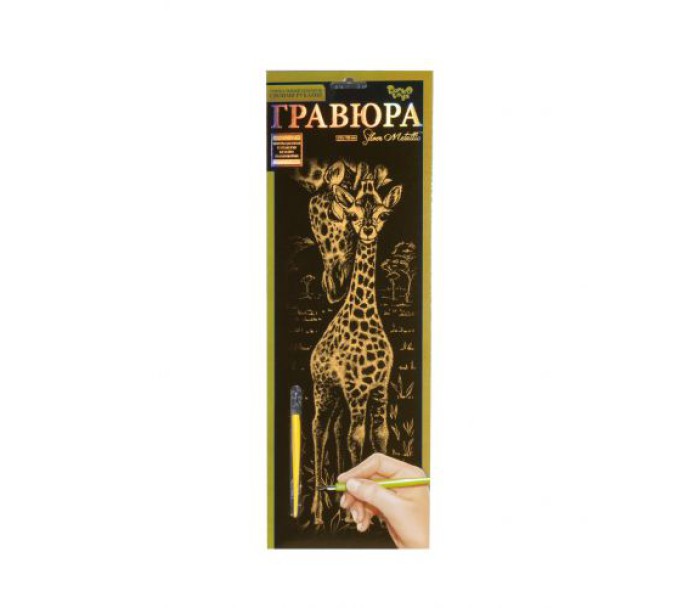 За допомогою штихеля можна провести по контуру малюнка лінії, поступово створивши зображення. В процесі роботи розвивається кисть, вигострюються руху пальців. У наборі: основа з нанесеним контуром, штихель. Розмір готової роботи: 41 х 15 см.