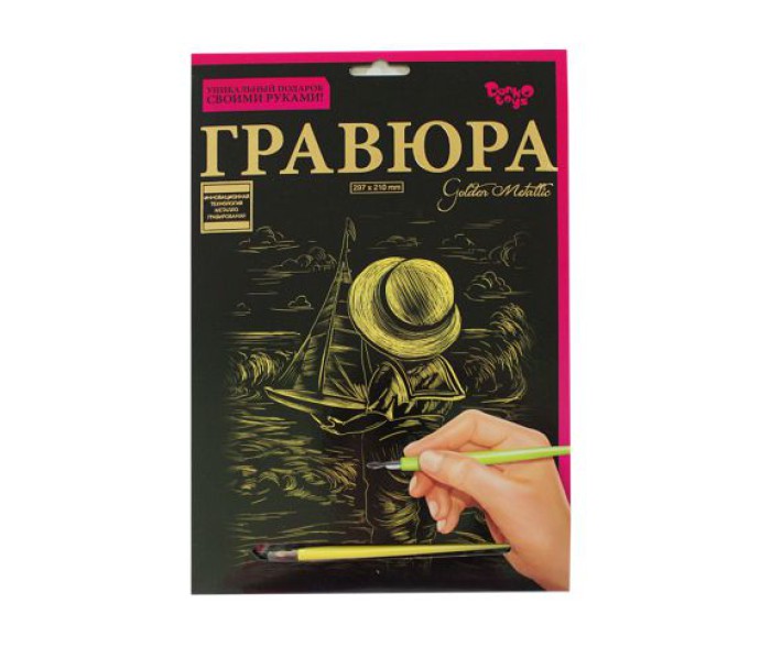 За допомогою штихеля можна провести по контуру малюнка лінії, поступово створивши зображення. В процесі роботи розвивається кисть, вигострюються руху пальців. У наборі: основа з нанесеним контуром, штихель. Розмір готової роботи: 30 х 21 см.