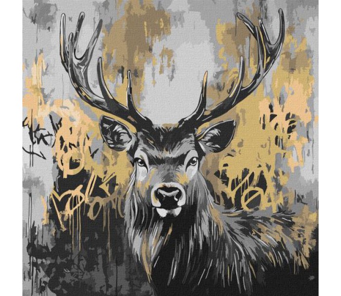 Картина за номерами з фарбами металiк "Золотий олень" 40х40 см