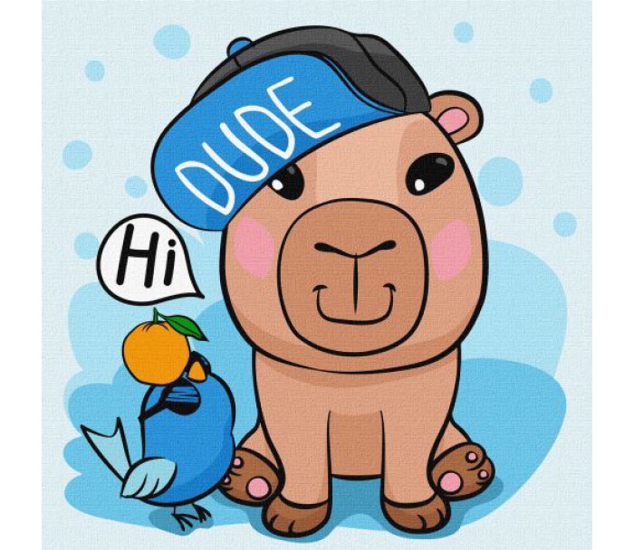 Картина за номерами. Для того, щоб намалювати картину, необхідно малювати за пронумерованими контурами, які відповідають кольору фарби. У наборі: полотно на підрамнику з галерейною натяжкою, паперовий дублікат з контурним малюнком картини (на картині нанесена схема контурів зображення з нумерацією), художні нейлонові пензлі, палітра акрилових фарб у контейнерах. Усі необхідні фарби вже в комплекті та не вимагають змішування. Розмір: 30х30 см.
