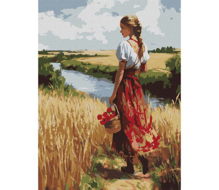 Набір для розпису по номерах "УКРАЇНКА ТА ЛАНИ" 30Х40 СМ
