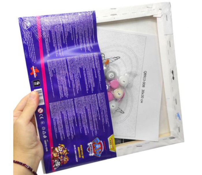 Комплектація: полотно на підрамнику з галерейною натяжкою, художні нейлонові пензлі, палітра акрилових фарб у контейнерах, дерев'яні деталі підставки для картини.
