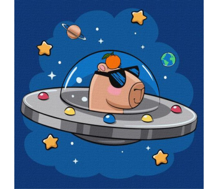 Картина за номерами - Капібара в космічній тарілці для вашої творчості. Зроблено в Україні.