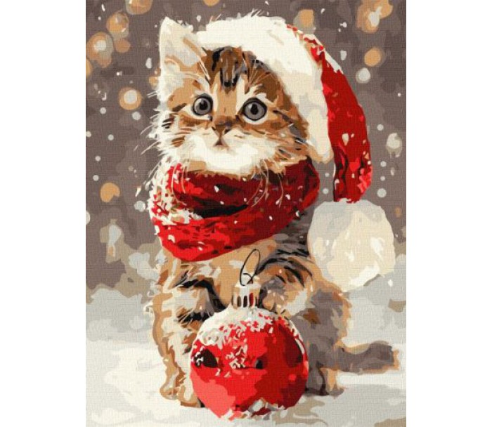 Картина за номерами - Кошеня і новорічна прикраса ©art_selena_ua для вашої творчості. Зроблено в Україні.