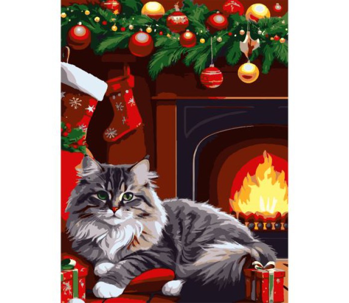 Картина по номерах "Різдвяний кіт" 30х40 см
