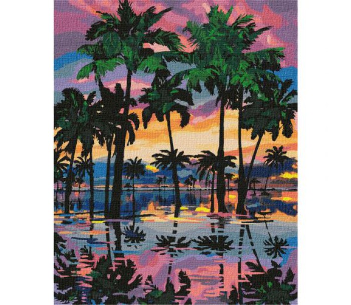 Картина за номерами "Південна романтика". Для того, щоб намалювати картину, необхідно малювати по пронумерованим контурам, які відповідають кольору фарби. У наборі: натуральне полотно на підрамнику з галерейного натяжкою, паперова дублікат з контурним малюнком картини (на картині нанесена схема контурів зображення з нумерацією), 3 нейлонові художні кисті, палітра акрилових фарб в контейнерах. Всі необхідні фарби вже в комплекті і не вимагають змішування. Розмір: 40 х 50 см. Кількість кольорів: 32. Складність - ★★★★★.
