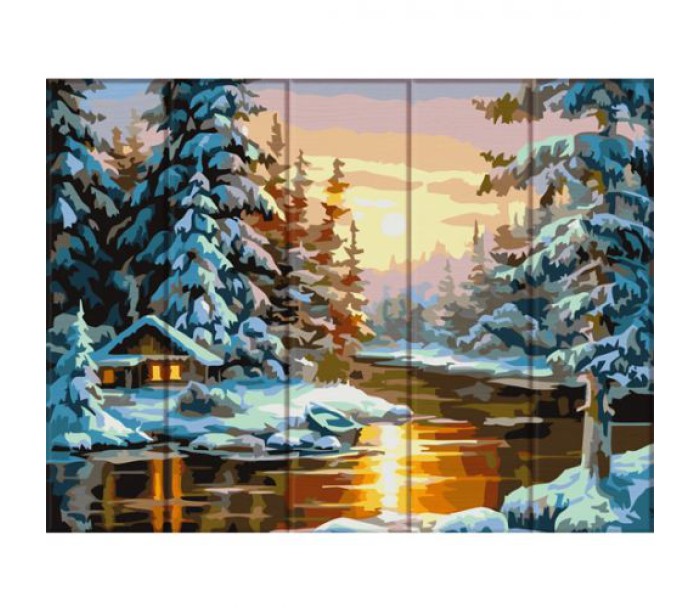 Для того, щоб намалювати картину, необхідно малювати по пронумерованим контурам, які відповідають кольору фарби. Виготовлена з екологічного матеріалу (сосна) жовтуватого кольору, має неоднорідну текстуру і характерні смолисті ділянки. У комплекті: дерев'яний полотно, фарби, пензлики, лак. Розмір картини: 30 х 40 см.