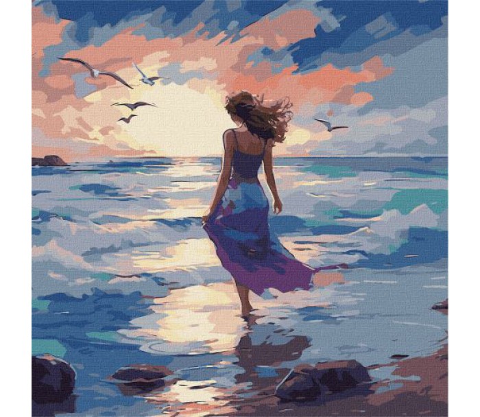Картина за номерами. Для того, щоб намалювати картину, необхідно малювати за пронумерованими контурами, які відповідають кольору фарби. У наборі: полотно на підрамнику з галерейною натяжкою, паперовий дублікат з контурним малюнком картини (на картині нанесена схема контурів зображення з нумерацією), художні нейлонові пензлі, палітра акрилових фарб у контейнерах. Усі необхідні фарби вже в комплекті та не вимагають змішування. Розмір: 40х40 см.