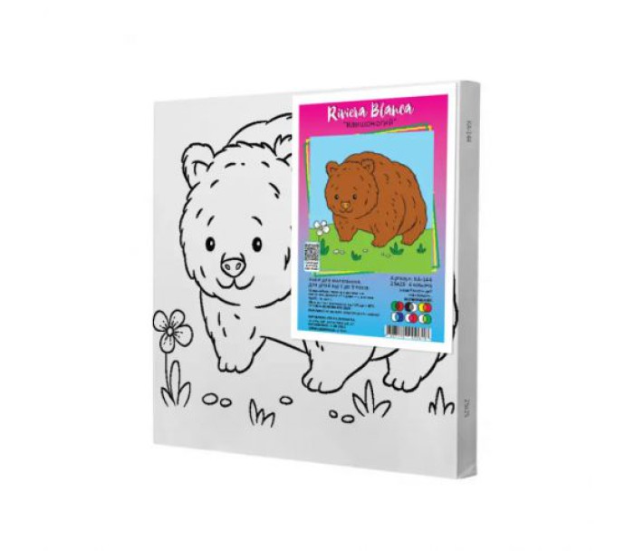 Комплектація: синтетичне полотно з нанесеними контурами майбутнього малюнка, натягнуте на дерев'яну рамку; водорозчинні акрилові фарби; пензлик