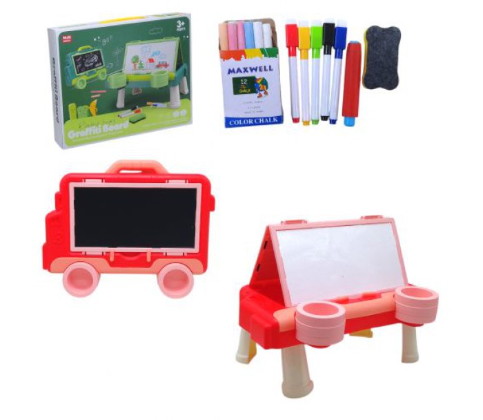 Дошка-столик для малювання 2 в 1 – зручне та функціональне рішення для дитячої творчості! Оснащена двома поверхнями: чорною для малювання крейдою та білою для маркерів. Може використовуватись як столик або досточка. Відмінний вибір для ігор та навчання. Розмір поля для малювання – 26 х 13 см.