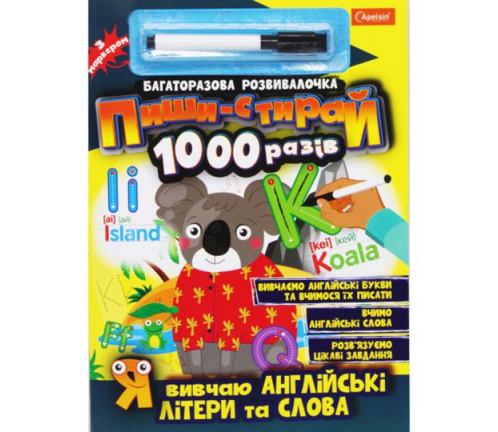 Дитині нудно виконувати завдання зі школи чи садочка? Запропонуйте їй "Багаторазову розвивалочку Пиши-стирай 1000 разів" - це готове рішення для веселого і захоплюючого навчання! Сторінки книжки мають спеціальне покриття, а в комплекті є маркер зі спеціальною гумкою на ковпачку, якою можна з легкістю стерти написане. Щоб витерти маркер, можна використовувати і підручні засоби - вологу серветку або губку.