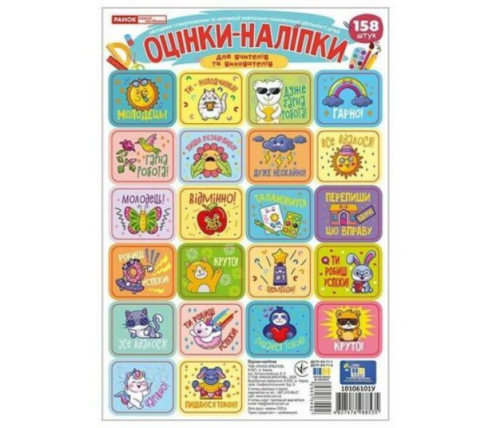 Оцінки-наліпки в пакеті (4 аркуші, 158 наліпок), бірюзові