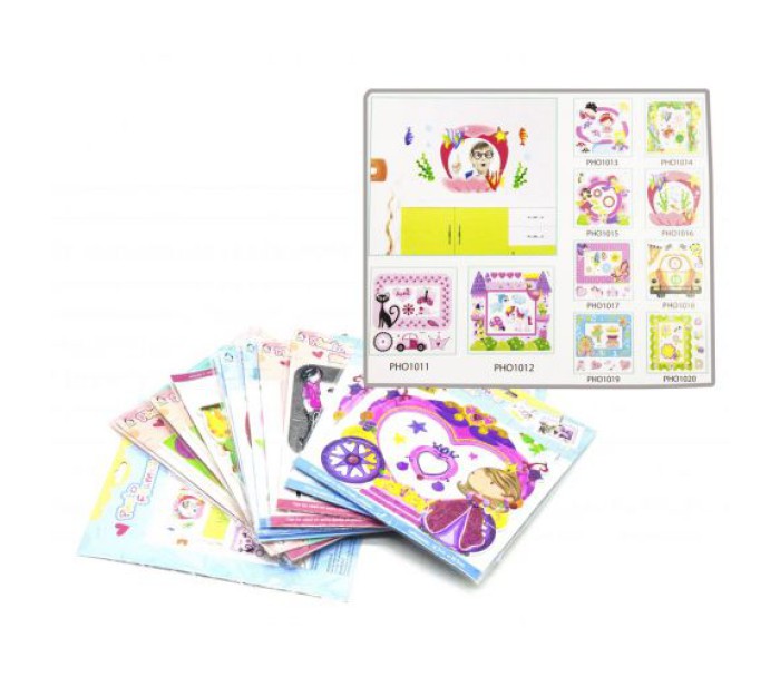 Наклейка у вигляді фоторамки дозволяє зробити фоторамку своїми руками. Для цього, фото поміщається на картон, а поверх нього клеїться наклейка рамка. У комплекті з рамкою, так само, є стікери. Розраховані на фото розміром, приблизно, 15х20 см. У наборі є різні види рамок (12 штук).