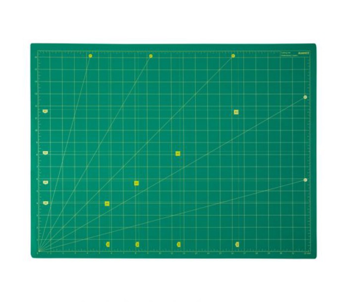 Двосторонній макетний килимок з щільної основи п'ятишарового синтетичного матеріалу дозволяє різати ножем м'яко і безпечно. Використовується для різання паперу, тканини, картону, шкіри і т.д. Сантиметрова та дюймова шкала. Має властивість самовідновлення після розрізів. Розмір А2+ (598мм*450мм). Товщина 3 мм.