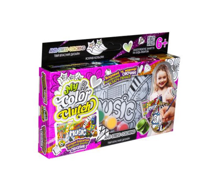 Набір креативної творчості "My Color Clutch". Яскравий розписного сяючий клатч-пенал. Розфарбуй фарбами і прикрась глітером клатч за власним дизайном.