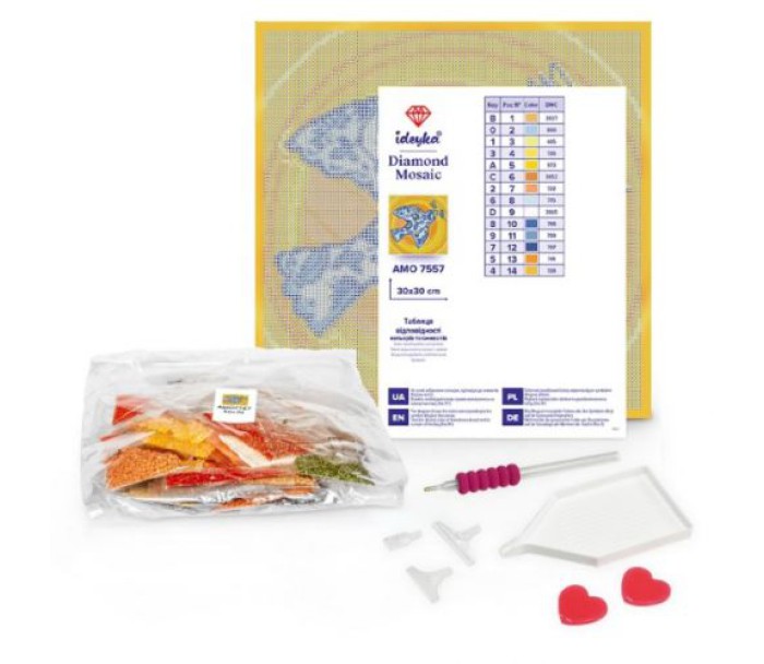 Викладення картин алмазною технікою є чудовим заняттям для зняття стресу, медитації та релаксу. Готові картини можуть прикрашати інтерʼєр. Виблискуючий шедевр створюється за допомогою маленьких різнокольорових кристалів, які один за одним слід приклеювати на заготовлений ескіз. У наборі: полотно з клейовим шаром на підрамнику, лоток для сортування страз, пінцет, стілус, липка маса для стілуса, різнокольорові стрази, схема. Розмір: 30х30 см.