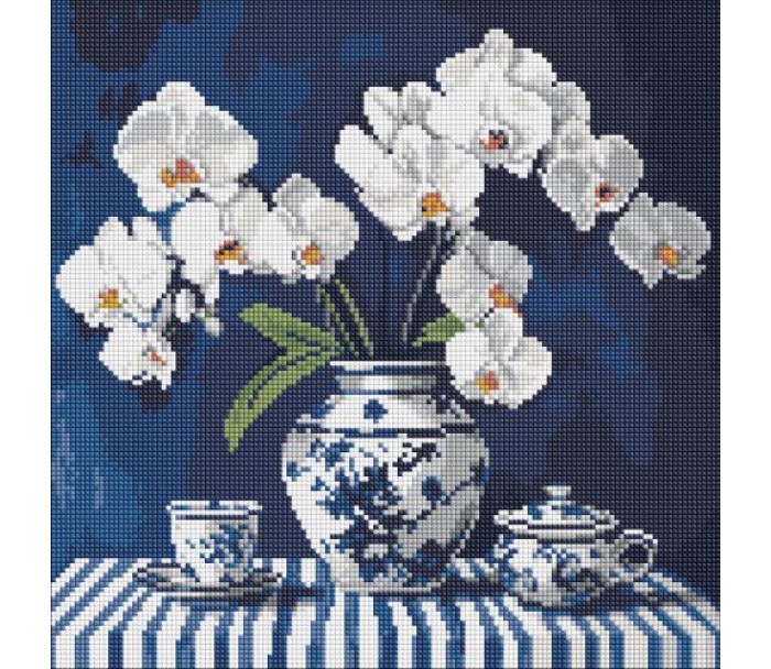 Алмазна мозаїка "Орхідея в порцеляні" 40х40 см