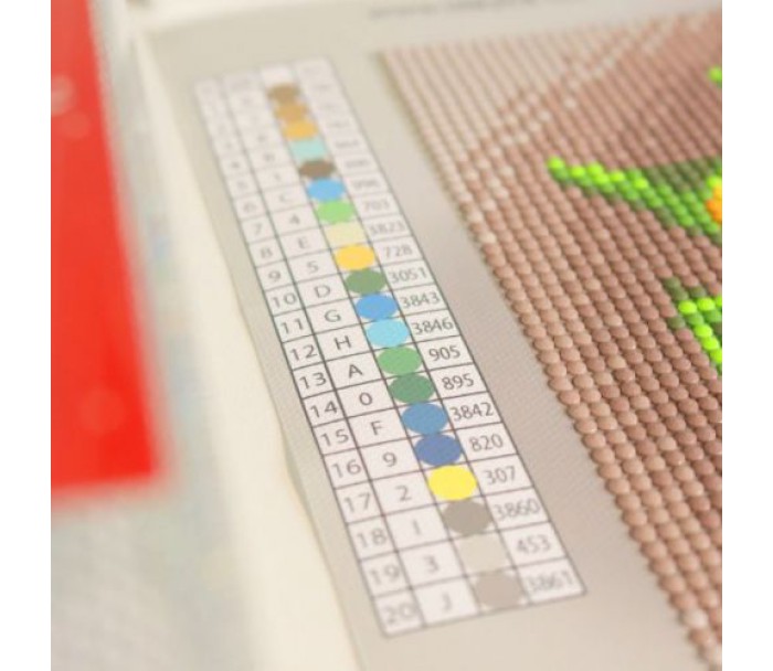 Комплектація: Склад набору: - полотно з клейовим шаром і кольоровою схемою без підрамника, - акрилові стрази згідно комплектації набору (круглі) та голограмні АВ-стрази, - спеціальна ручка-стилус для роботи зі стразами з м’яким тримачем та 3 додаткових насадки для нього: для 3-х і 9-ти камінчиків-стразів, та насадка для вирівнювання стразів на полотні, - два гель-клея, - лоток для сортування стразів, - зіп-пакети для стразів, - інструкція. Кольори готової мозаїки можуть незначно відрізнятися від показ