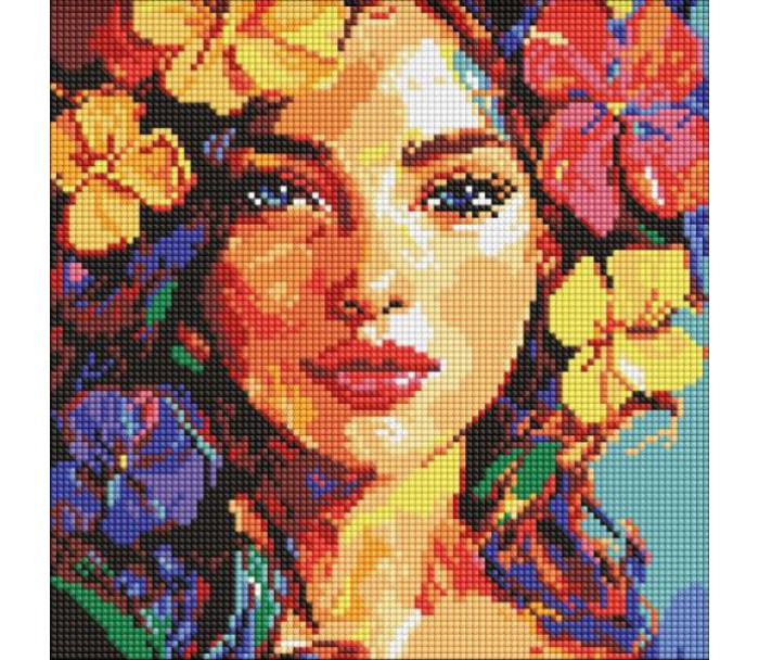 Комплектація: полотно з клейовим шаром і кольоровою схемою, яке оформлено на підрамник галерейним способом, - акрилові стрази згідно комплектації набору (круглі), - спеціальна ручка-стилус для роботи зі стразами з м’яким тримачем та 3 додаткових насадки для нього: для 3-х і 9-ти камінчиків-стразів, та насадка для вирівнювання стразів на полотні, - два гель-клея, - лоток для сортування стразів, - зіп-пакети для стразів, - інструкція.