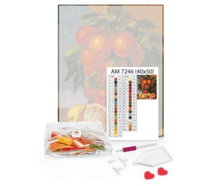 Комплектація: Склад набору: - полотно з клейовим шаром і кольоровою схемою, яке оформлено на підрамник галерейним способом, - акрилові стрази згідно комплектації набору (круглі), - спеціальна ручка-стилус для роботи зі стразами з м’яким тримачем та 3 додаткових насадки для нього: для 3-х і 9-ти камінчиків-стразів, та насадка для вирівнювання стразів на полотні, - два гель-клея, - лоток для сортування стразів, - зіп-пакети для стразів, - інструкція. Кольори готової мозаїки можуть незначно відрізнятися